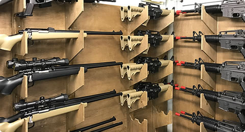 スタッフからエアガンなどレンタル装備を受け取り、エアガンの基本的な操作手順や、安全に取り扱う為の注意事項を説明いたします。