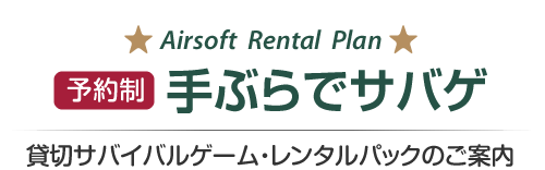 手ぶらでサバゲ(サバゲー装備レンタルパック)は、サバイバルゲームに必要なエアガン(電動ガン・スナイパーライフル等)バッテリー・多弾数マガジン1本・ゴーグルをセットで貸し出しする、お手軽レンタルパックです。またサバゲーフィールドは、平日・土日祭日、Aフィールド・Bフィールド、午前の部・午後の部ともに完全貸切ですので、初めての方・初心者も、ご家族やお友達と一緒に安心してサバイバルゲームをお楽しみいただけます。